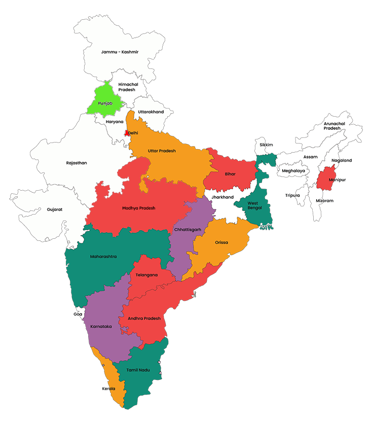 REEDS programs/projects carried across fifteen states - Andhra Pradesh, Bihar, Chhattisgarh, Delhi, Gujarat, Karnataka, Kerala, Maharashtra, Manipur, Odisha, Punjab, Tamil Nādu, Telangana, Uttar Pradesh, West Bengal and Madhya Pradesh.